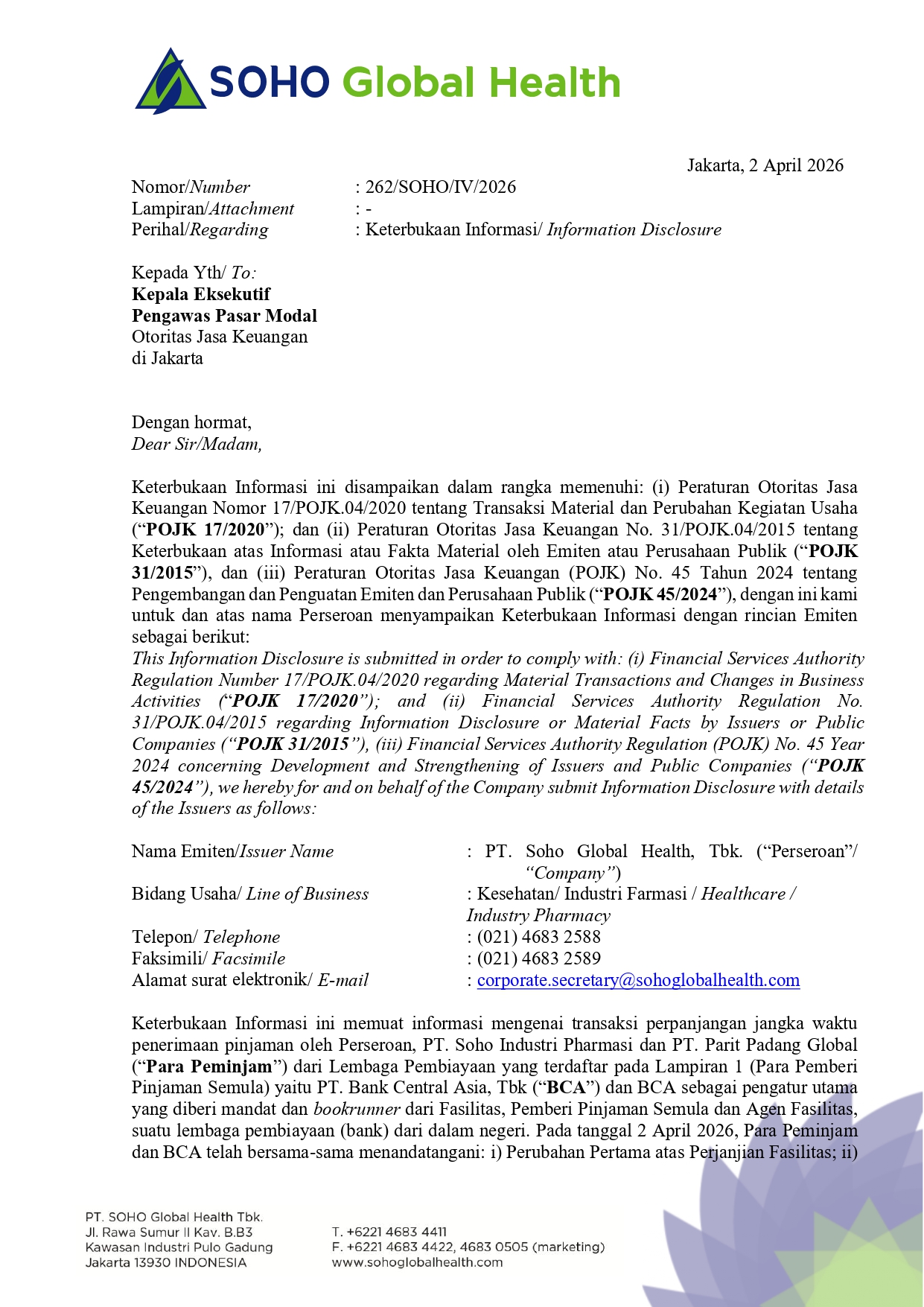 15 Jan 2026_Keterbukaan Informasi terkait Perubahan dan atau penambahan Kegiatan Usaha PT Soho Global Health Tbk